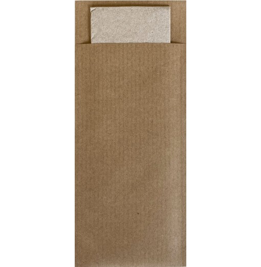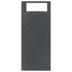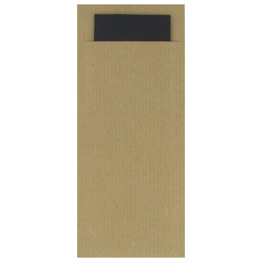 Funda para cubiertos Pochette Ecoline Natural de 8,5x20cm de papel OFFSET de 120gr/m2 con servilleta Tissue Negra 2 capas de 23x39cm. Servilleta con tinta de agua y certificación FSC. Libre de PE (Polietileno). Materia prima Km 0 y residuos en economía circular. Embalaje y precintado en material RECICLADO 100%. Disponemos de diferentes colores y diseños para vestir su mesa de forma única y exclusiva. SERVILLETA INCLUIDA. Posibilidad de personalización. Consúltenos las diferentes opciones.