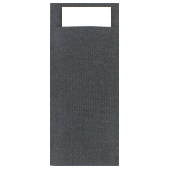 Envío 48/72hFunda papel Offset 120gr/m2 Dimensiones 85x20cm Servilleta Tissue Negra 2 capas Dimensiones 23x39cm. Certificación FSC y Libre de PE Embalaje y precintado 100% RECICLADO Caja de 600 unidades Posibilidad de personalización