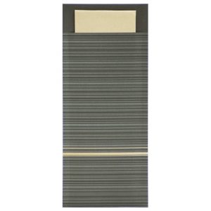 Funda de servilleta de dimensiones 8,5x20cm con servilleta TISSUE 2 capas de dimensiones 23x39cm incluida. Papel OFFSET de 120gr/m2 serigrafiada con tinta de agua. Certificación FSC y libre de PE (Polietileno) Disponemos de diferentes diseños para vestir su mesa de forma única y exclusiva. Posibilidad de personalización. Consúltenos las diferentes opciones.